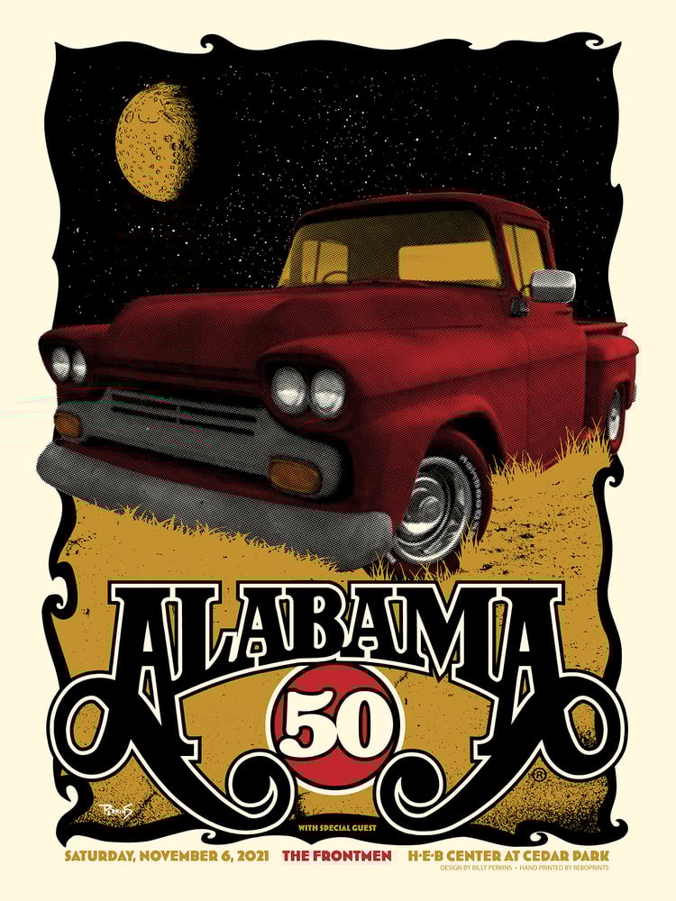 Show poster for legendary country band Alabama, touring for the band's 50th Anniversary.