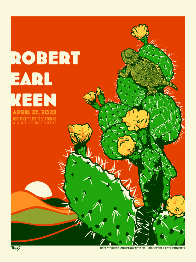 Official show poster for Robert Earl Keen's performance on the long-running television show Austin City Limits, taped April 27, 2022